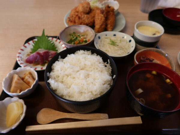 入り口わきに掲げられたランチメニューに、大好きなカキフライがあったので、迷わずカキフライランチをセレクト(^^)/