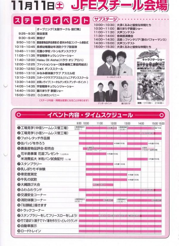 | 場所 | JFEスチール会場 (雨天決行 但し、天候その他の事由によりイベント内容を変更する場合があります。) |
