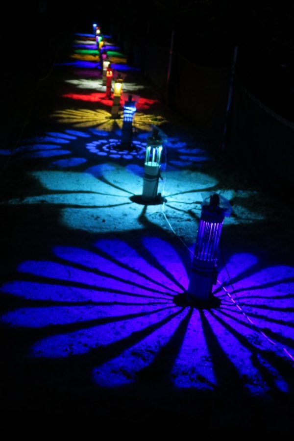 そして、もう一つの目玉は、ホタルの会のメンバーさんが作ったというカラフルな竹灯籠の幻想的な風景!